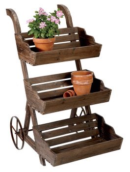 43" Old Fashioned Three Tier Flower Plant Stand Push Cart Rating ,
