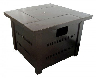 Outdoor patio propane fire pit comes in Hammered Bronze. 35,000 BTU's of variable heat. This unit comes with a battery operated pulse igniter for easy starting, inside the door to conceal components and propane tank.